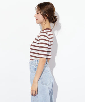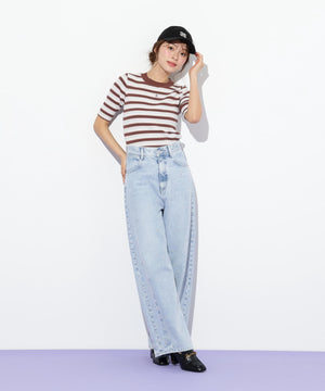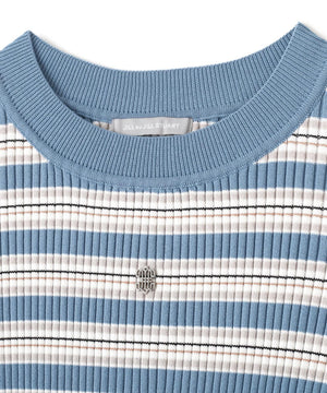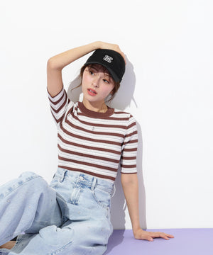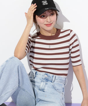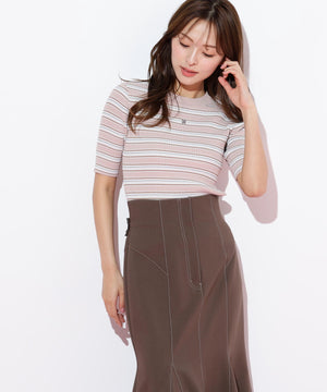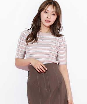華やかなラメ糸を織り交ぜたマルチボーダーニット。コントラストカラーが目を引き、スタイリングのアクセントになります。コンパクトなサイズ感のニットなので、スカートにもパンツにも合わせやすく、インナーとしても活躍できます。※撮影時照明の関係により、色味が違って見える場合がございます。