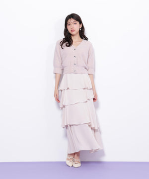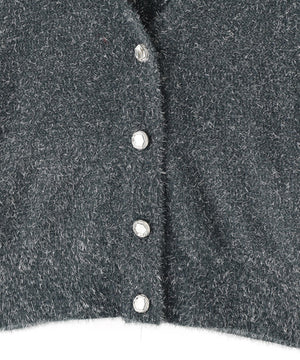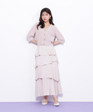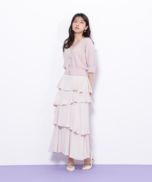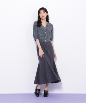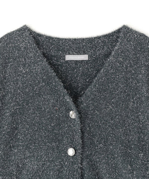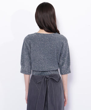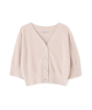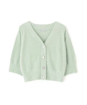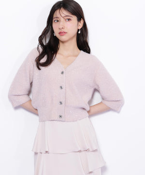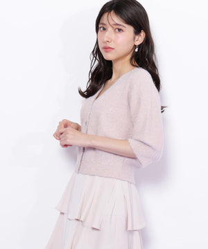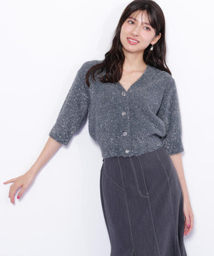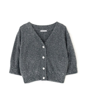 大人っぽい雰囲気を演出するメタルボタン付き半袖カーディガン。繊細にきらめくラメ糸とふんわりとしたフェザーヤーンをMIXし、華やかさと柔らかな印象を両立。フロントにはメタルボタンをあしらい、洗練されたアクセントに。冷房対策や軽い羽織りとしても活躍する、着回し力の高いデザインです。Tシャツやワンピースと合わせると、大人フェミニンなスタイルが完成します。※撮影時照明の関係により、色味が違って見える場合がございます。