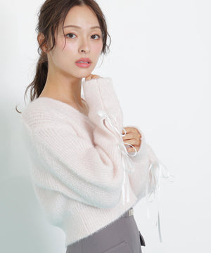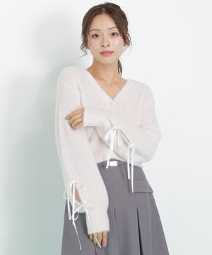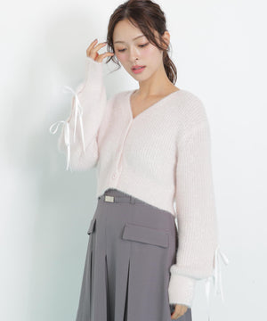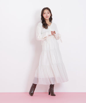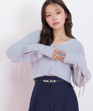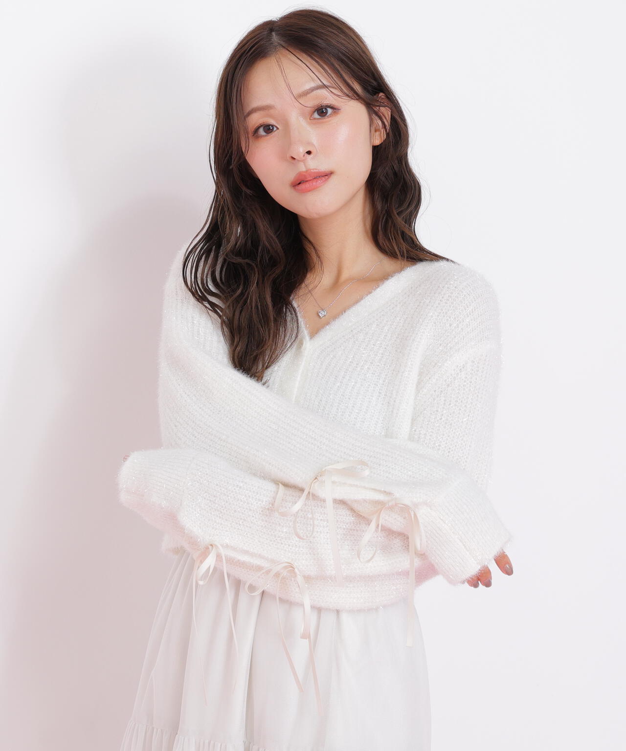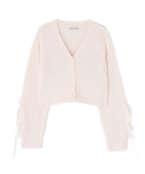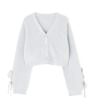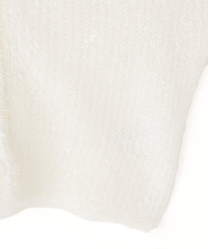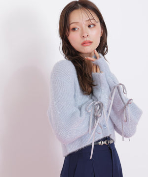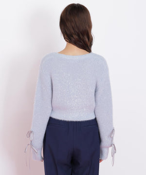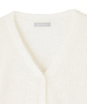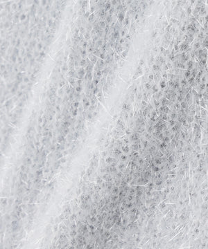 透明のキラキラとしたフィルムフェザー素材のゆるっとしたカーディガン。