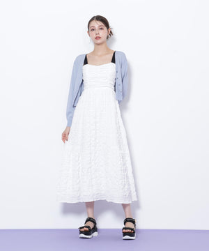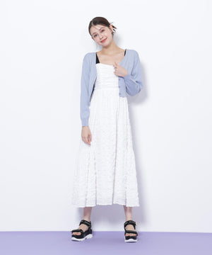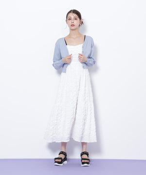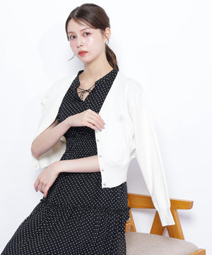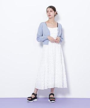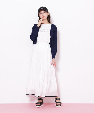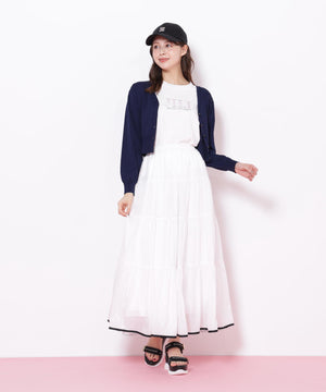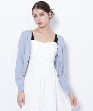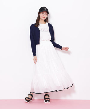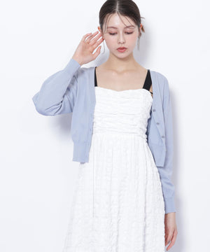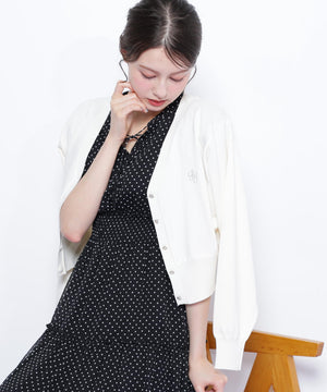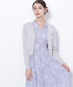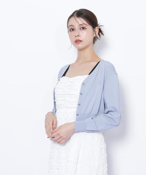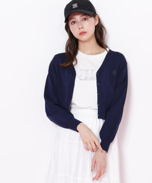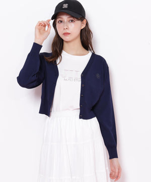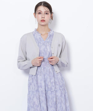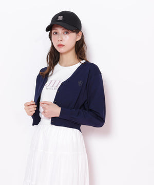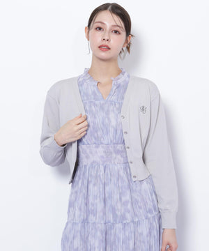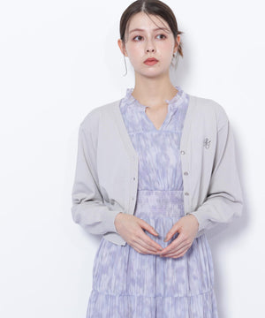 清涼感のあるニットを使用したベーシックなデザインのカーディガン。これからの季節に頼れる、UVとウォッシャブル機能を備えた素材を使用しています。左胸はラメ糸でロゴ刺しゅうを入れ、フロントはやや透け感のある釦をプラス。スカートやパンツ、ワンピースにも合う着丈なのでコーディネートの幅が広がります。※撮影時照明の関係により、色味が違って見える場合がございます。