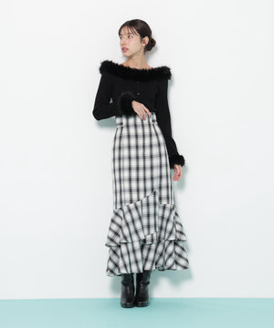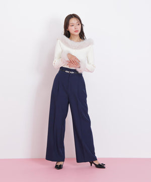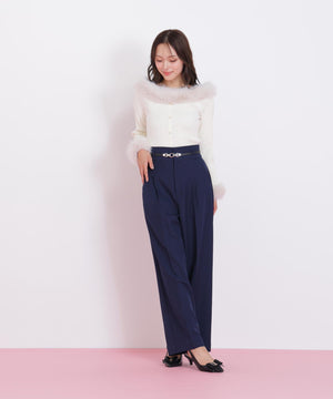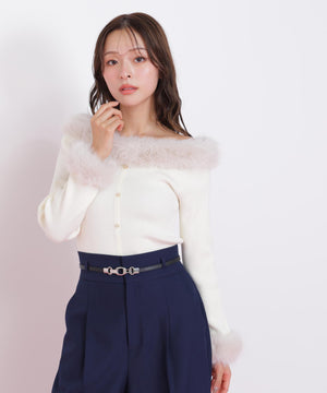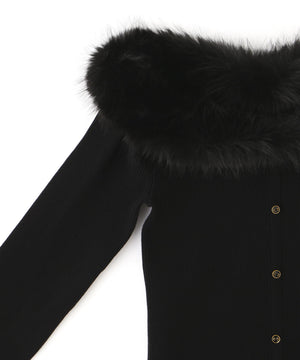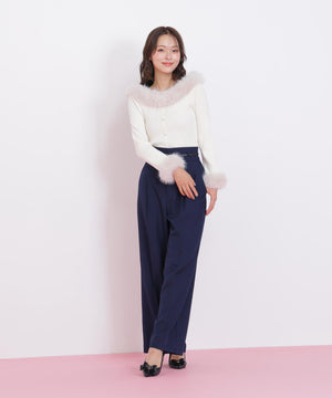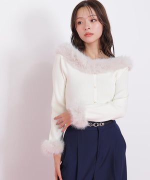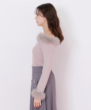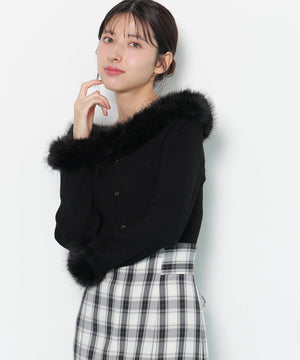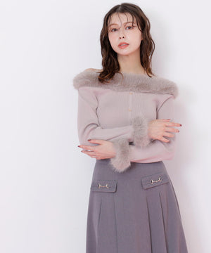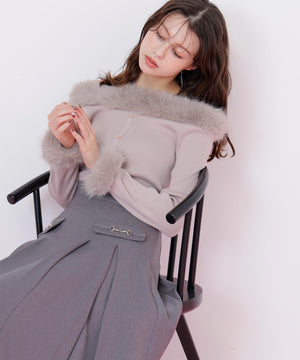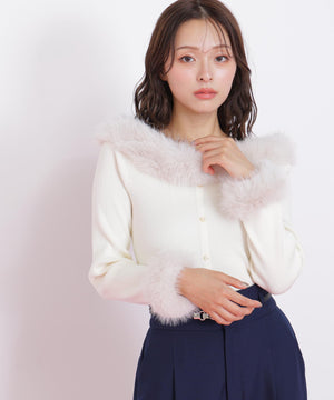 昨年人気だったアイテムを今年らしくアップデート!襟と袖口にフェイクファーをあしらったニットです。今回はフェイクファーのボリュームを出して、より華やかなデザインに。フェイクファーの襟は縫い付けており、袖口は取り外し可能。アウターやTPOに合わせてアレンジを楽しめます。前開き風ディテールもアクセント。裾はボトムスにインするとスタイルアップを叶えます。※撮影時照明の関係により、色味が違って見える場合がございます。