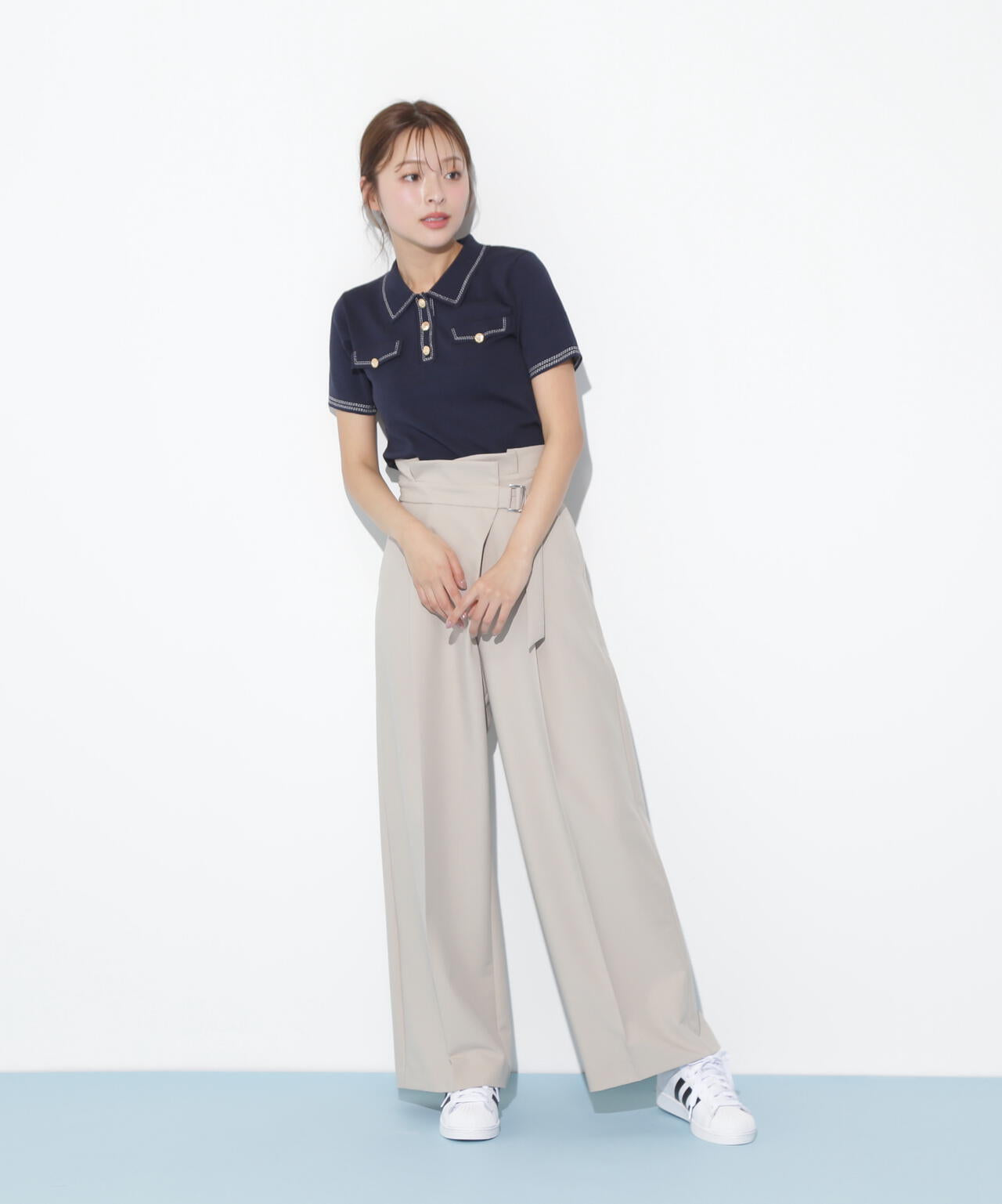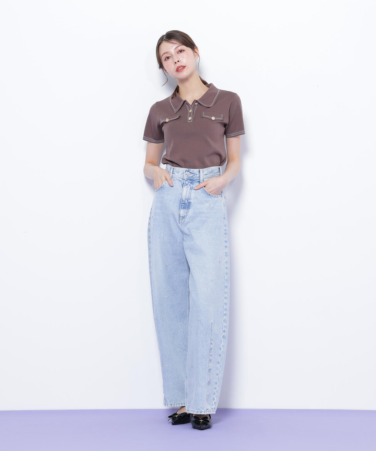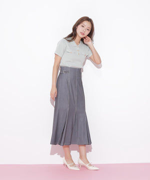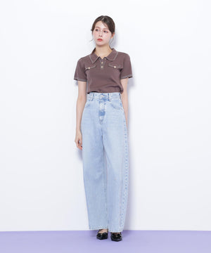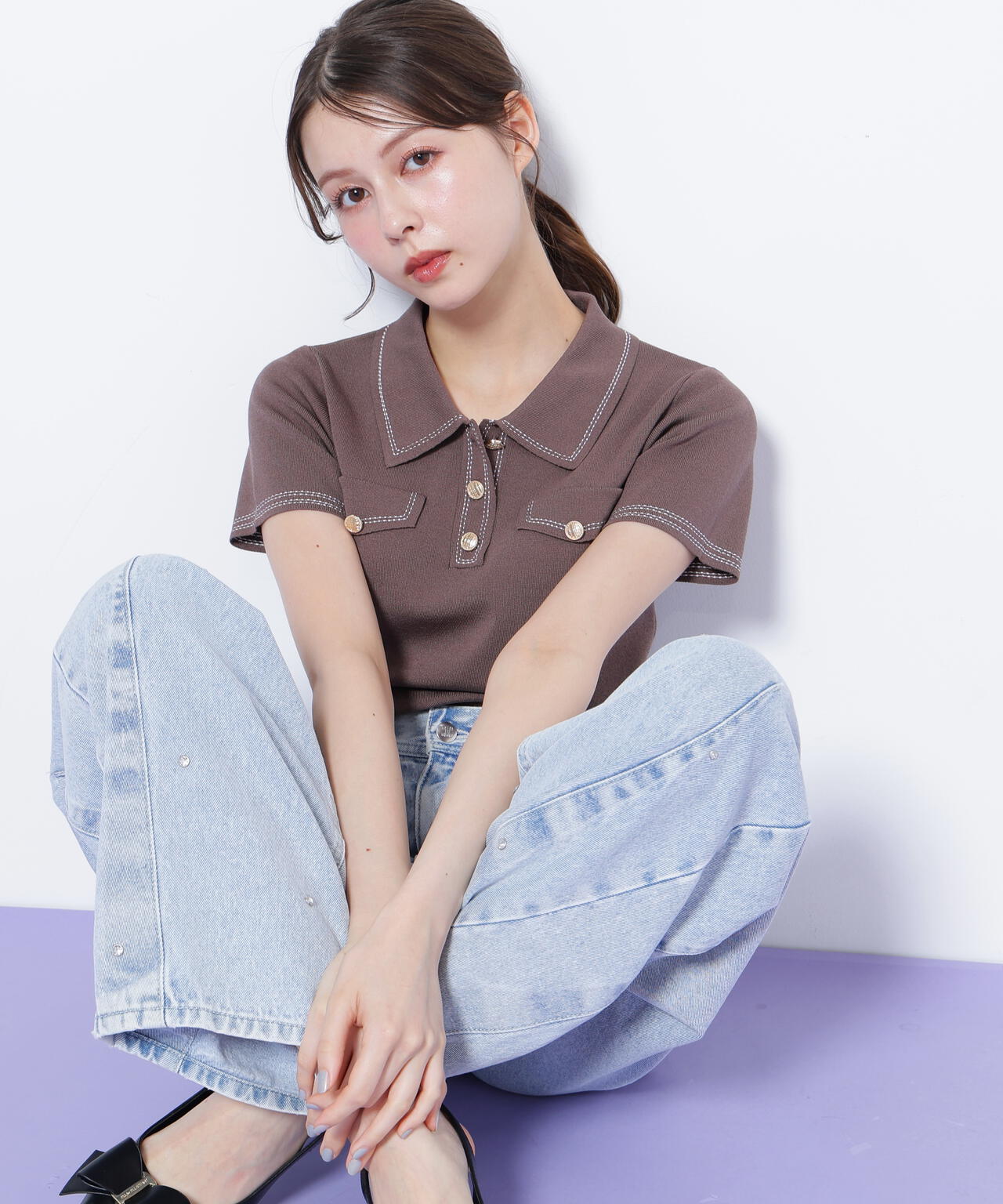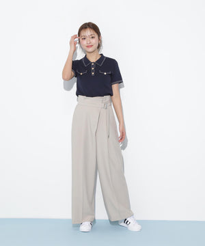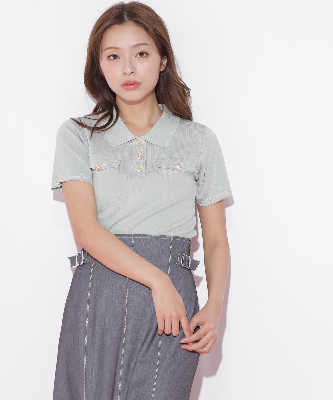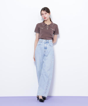 人気商品が再入荷!ドライタッチなポロ襟ニットトップス。さらっとした強撚のドライタッチな糸を使っているので、暑い時期まで長く着ていただけます。ゴールドカラーのヴィンテージ調の釦と、襟やポケットに取り入れたステッチラインがアクセント。トレンドのポロシャツディテールながら、スポーティになりすぎずフェミニンな雰囲気で着られます。※撮影時照明の関係により、色味が違って見える場合がございます。