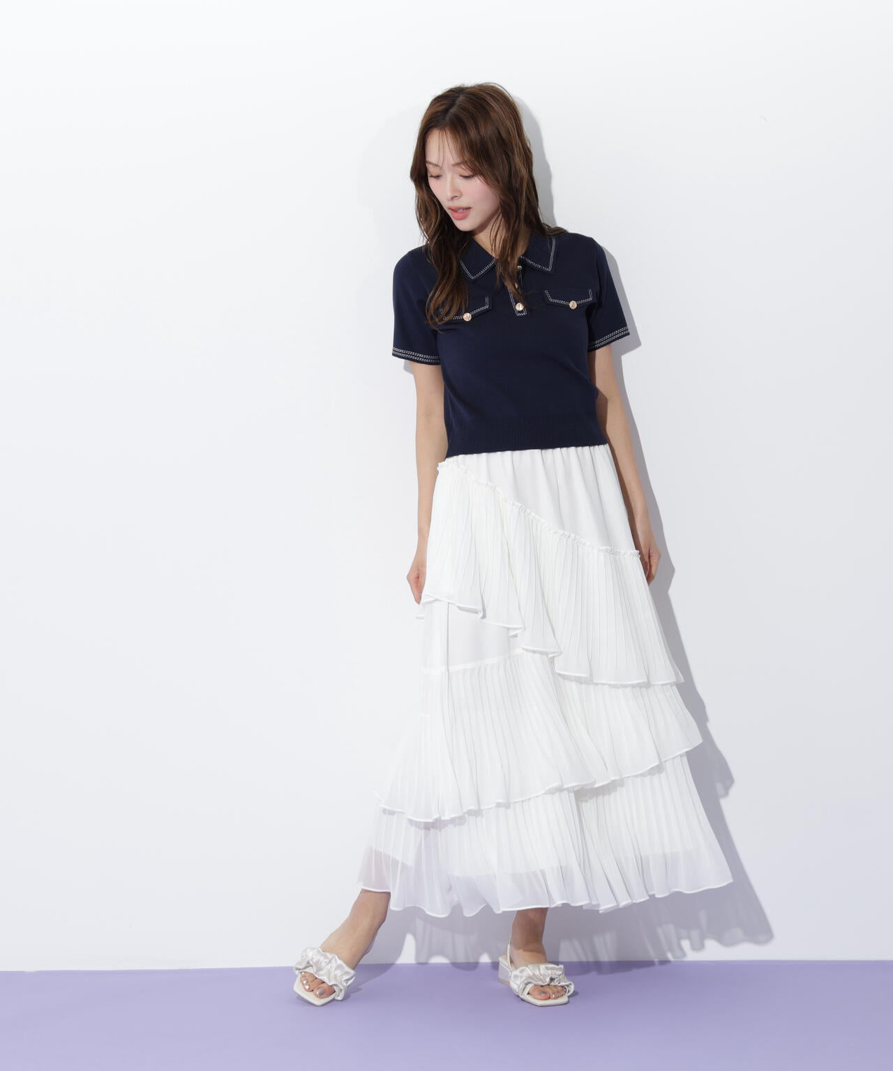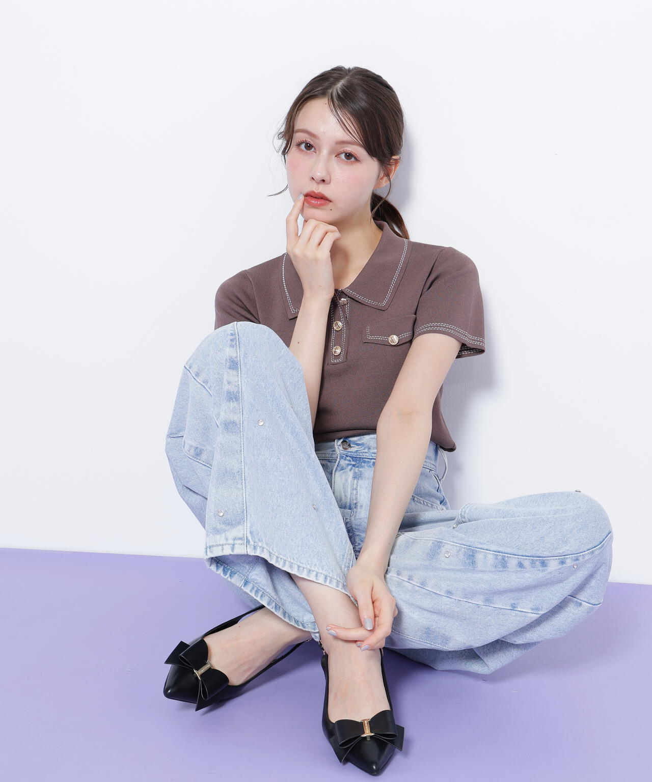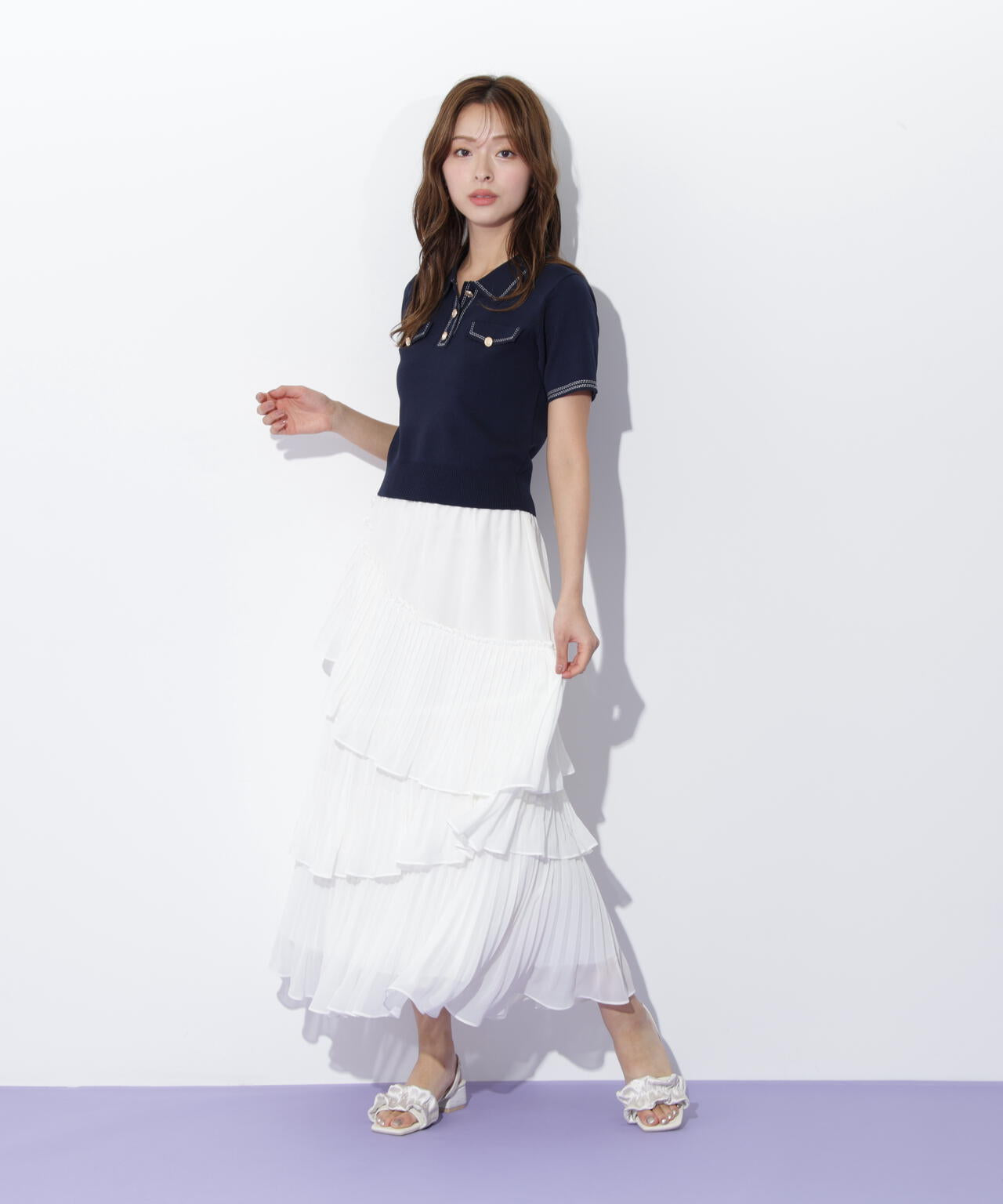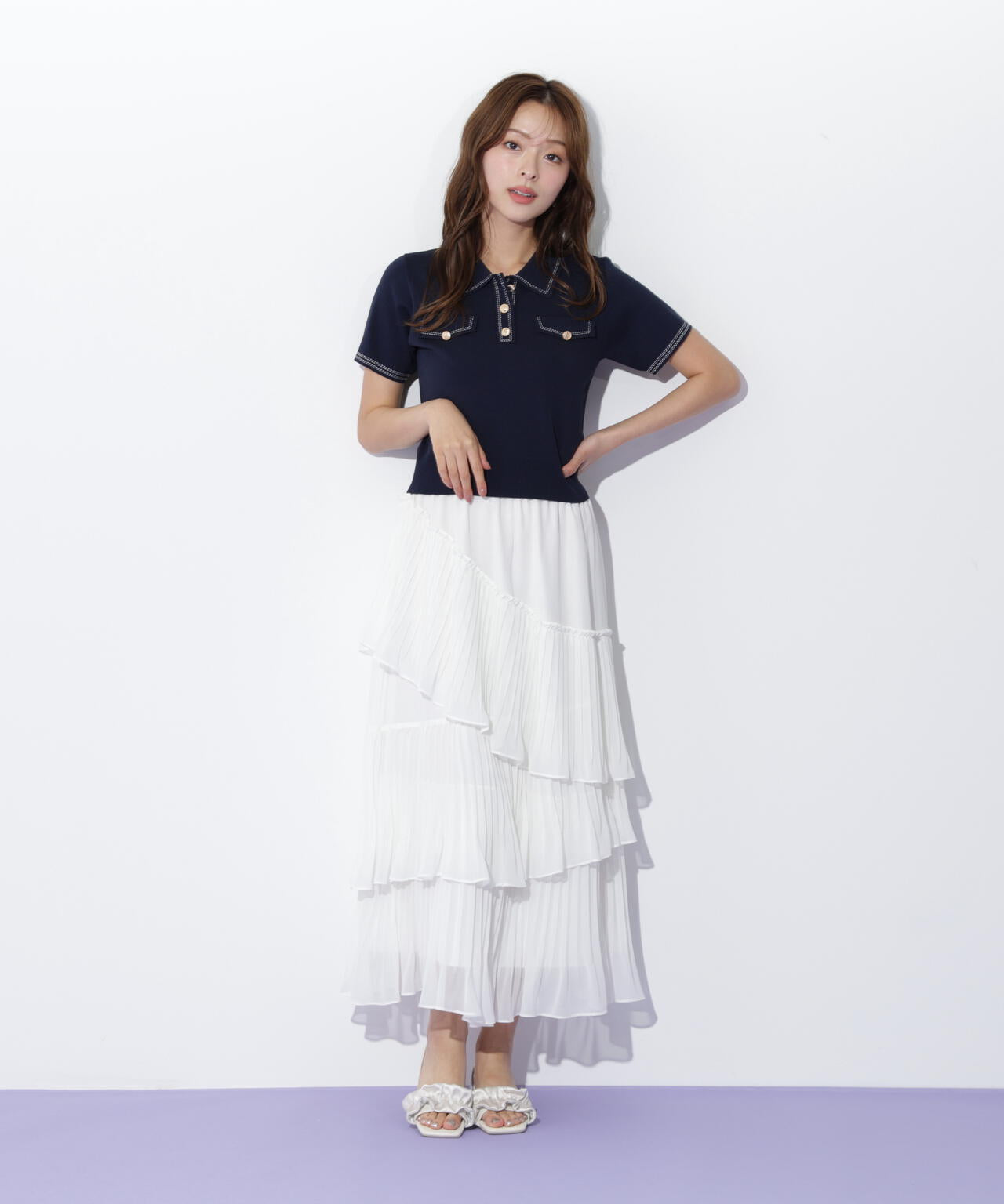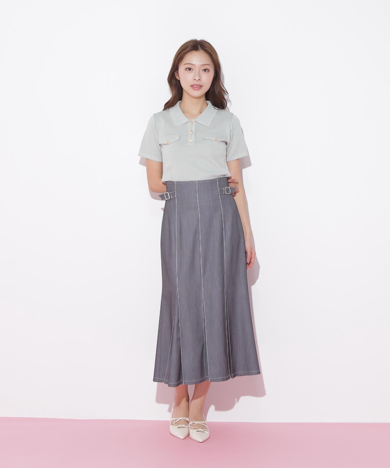 人気商品が再入荷!ドライタッチなポロ襟ニットトップス。さらっとした強撚のドライタッチな糸を使っているので、暑い時期まで長く着ていただけます。ゴールドカラーのヴィンテージ調の釦と、襟やポケットに取り入れたステッチラインがアクセント。トレンドのポロシャツディテールながら、スポーティになりすぎずフェミニンな雰囲気で着られます。※撮影時照明の関係により、色味が違って見える場合がございます。