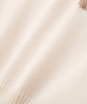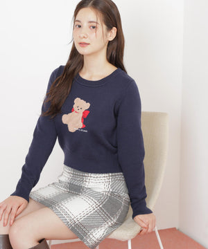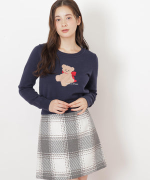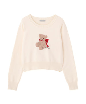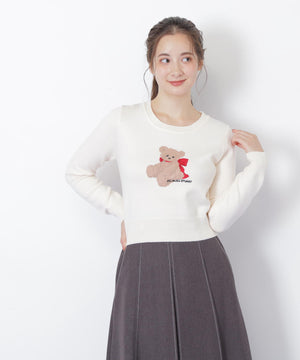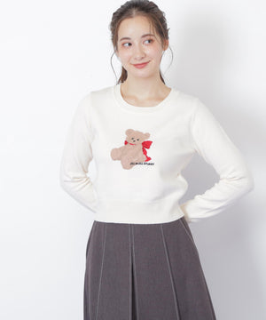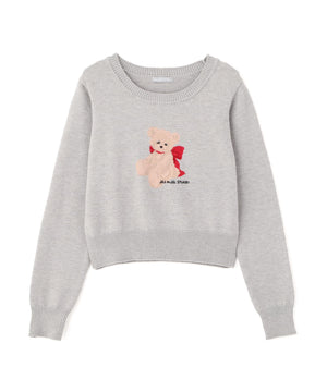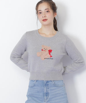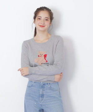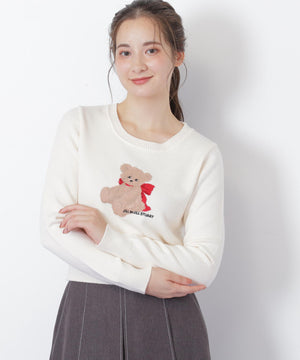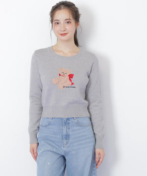 JILL by JILL STUARTオリジナルのベアがキャッチーなニットトップス。暖かみのある糸を使用して、くまモチーフをインターシャ編みで表現したデザインです。くまやリボンの陰影を出すために複数の糸を組み合わせた特別感のある1枚。コンパクトなサイズ感ですっきりと着用いただけます。※撮影時照明の関係により、色味が違って見える場合がございます。