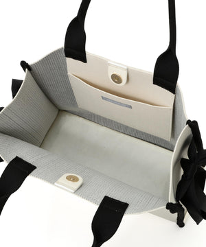 「デイリーに活躍する上品なニットバッグ」本体をニットの糸で編み上げ特殊な圧縮加工を入れる事でしっかりと自立するようにしています。カジュアルになりがちなニット素材を、キレイな表面感に仕上げて品良くまとめたのがポイント。肩掛け出来るハンドルや、A4サイズで書類等がしっかり収まる横幅、マチをしっかり取っているので収納力が高く、通勤や通学にお勧めです。内側のニットポケットは中身を隠すフラップにもなる2WAY仕様です。※撮影時照明の関係により、色味が違って見える場合がございます。
