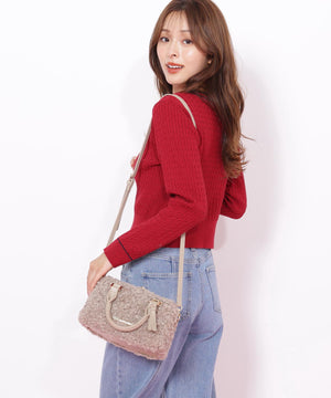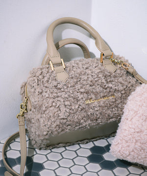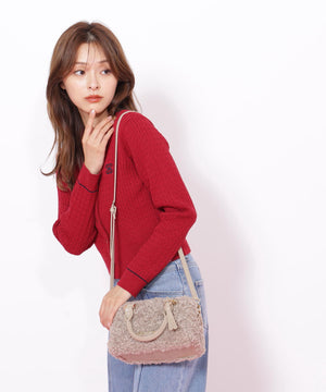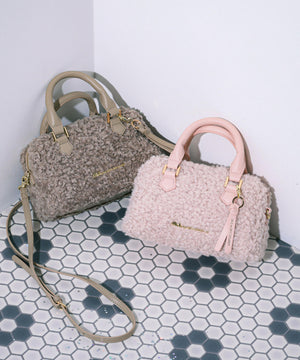 「もこもこ感が大人可愛いボア素材のボストンバッグ」大人のフェミニンスタイルにぴったりなラウンドフォルムのボストンバッグは、合皮使いをワントーンでまとめた上品なデザインです。ショルダー紐は取り外しが出来、ハンドバッグとしても使える2wayデザイン。使いやすい小ぶりなサイズ感と温かみのあるボア素材が冬のコーディネートに華を添えます。ファスナーはサイドまで開き中身が取り出しやすい仕様です。※撮影時照明の関係により、色味が違って見える場合がございます。