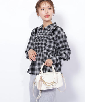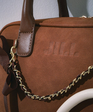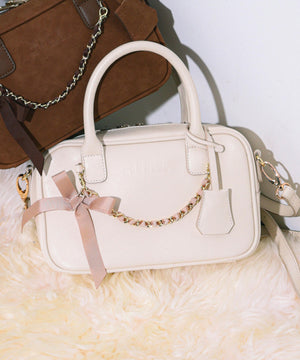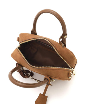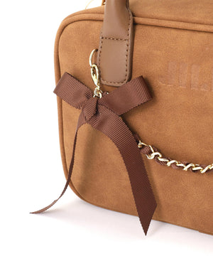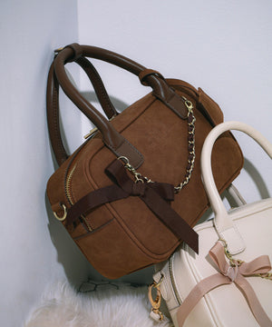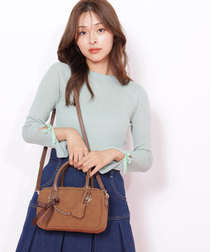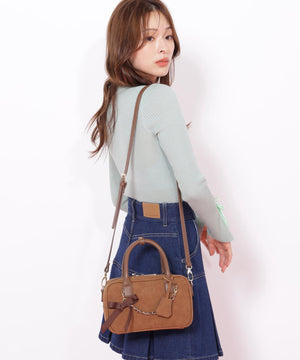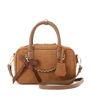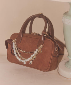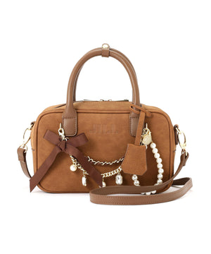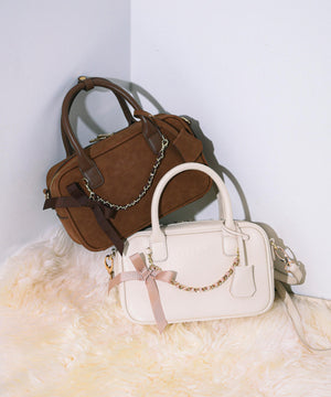 「トレンドのコンパクトなボストンバッグからチャーム付きが登場」コンパクトなサイズ感と横長シルエットが、洗練されたムードを演出します。取り外しできるチェーン&リボンのチャーム付き。(パールチェーンチャーム・店舗商品番号125-55299007)を揃えて重ねづけすると、遊び心のあるスタイルが楽しめます。ショルダーも取り外し可能。トレンドのスウェード素材を使ったブラウンと、ツヤのあるフェイクレザーのクリーンなホワイトの2色展開です。※撮影時照明の関係により、色味が違って見える場合がございます。