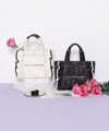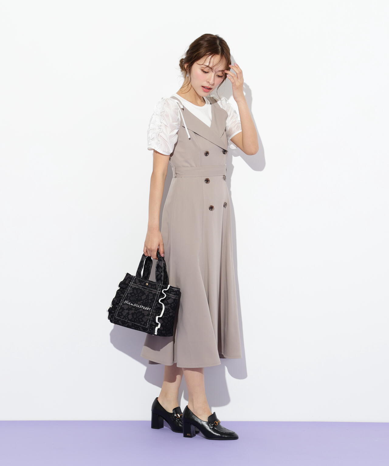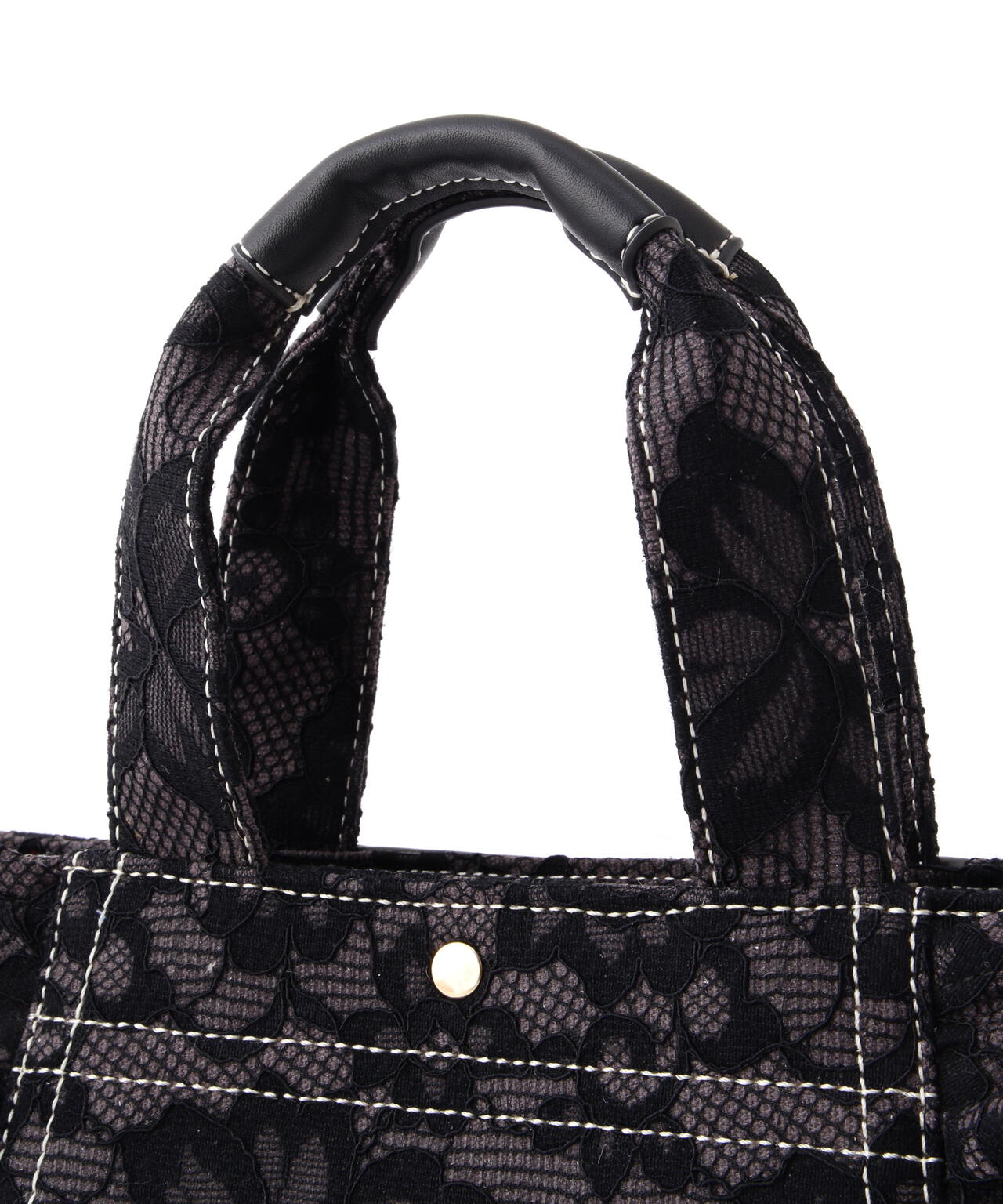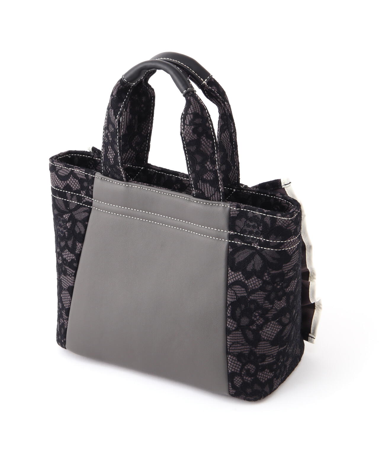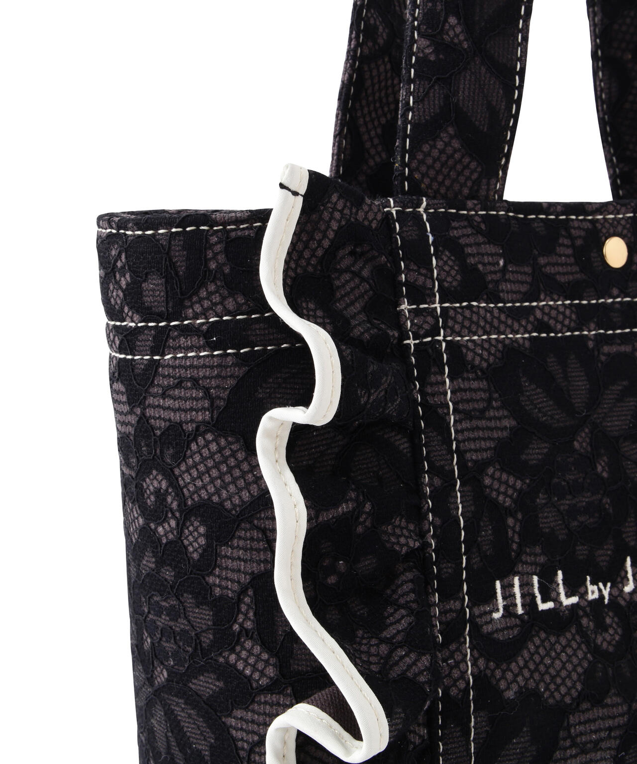 JILL by JILL STUART 定番のフリルトートからレース素材が登場!定番のキャンバスライクな素材にレース生地を貼り合わせて大人かわいい印象に。同系色でまとめたデザインが上品さを叶えます。内側は荷物を整理しやすい小物ポケット付き。背面とハンドル部分には合皮素材を合わせて、品の良さと実用性も兼ね備えました。季節を問わず幅広いシーンにお使いいただけます。※撮影時照明の関係により、色味が違って見える場合がございます。