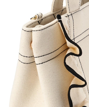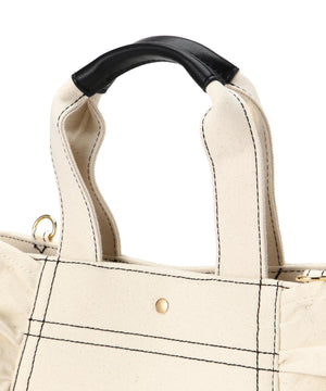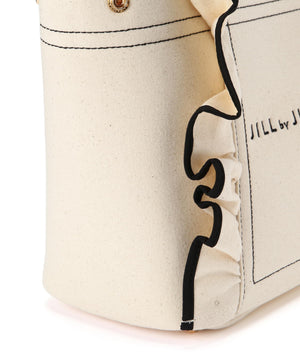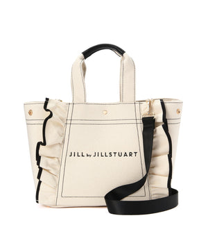 JILL by JILL STUARTで大人気のトートバッグ。立体的なフリルやステッチを効かせた可愛らしいデザイン。両脇にはスナップボタンが付いているので、荷物の収納量に合わせてフォルム調節ができます。ハンドル部分には合皮素材を合わせて、品の良さと実用性も兼ね備えました。取り外しできるショルダー付きの2Way仕様。丈夫でナチュラル感のある素材は、季節を問わずにお使い頂けます。※撮影時照明の関係により、色味が違って見える場合がございます。