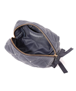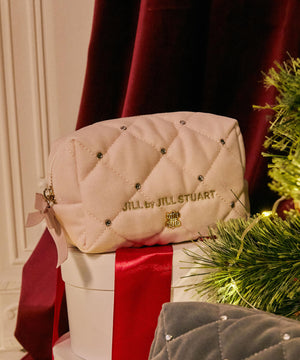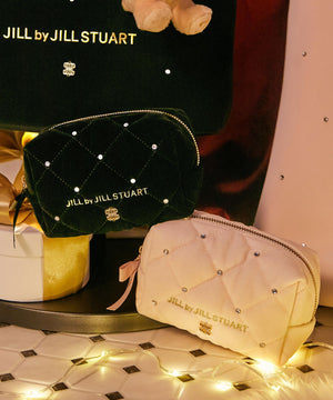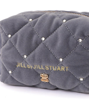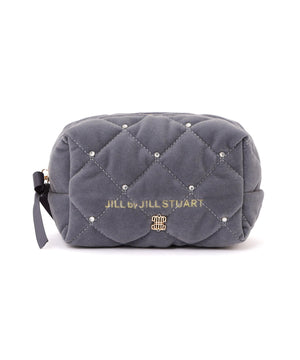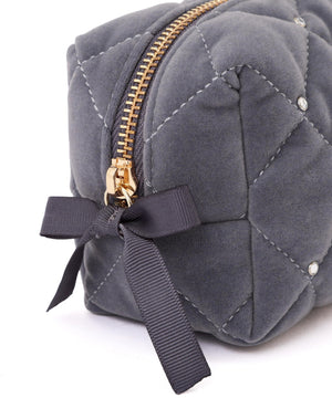 ベロアキルティングが上品なポーチ。ベロア素材にキルティングステッチを入れてビジュー調を散りばめた、高級感のあるデザインです。開口部はリボン付きファスナーで大きく開き、中のモノが見やすくマチ幅もある便利なデザイン。ご自身用はもちろんギフトにもお勧めです。※ベロア素材の特性上、ホコリ等が付着しやすい性質を持っています。ホコリが気になる時はベロア用のクリーナーなどで落とすことが可能です。※撮影時照明の関係により、色味が違って見える場合がございます。