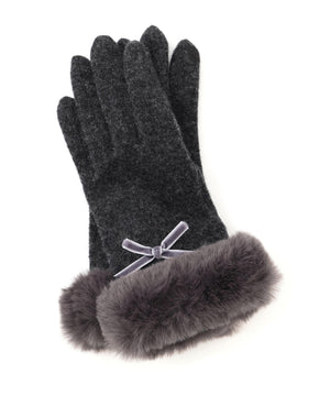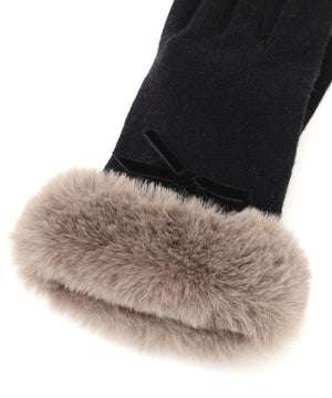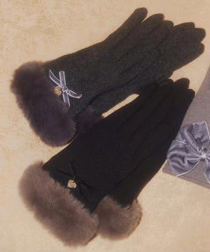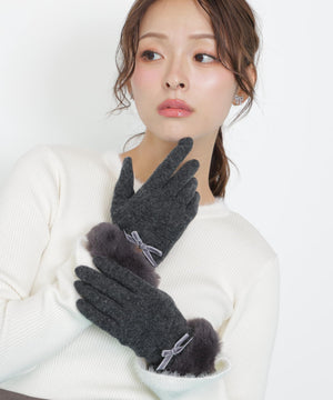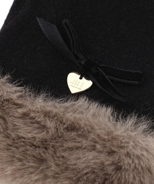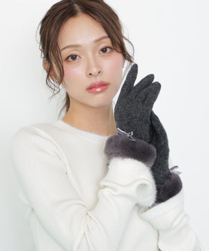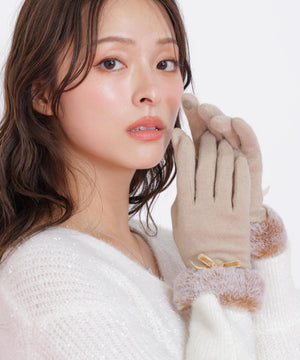JILL by JILL STUART定番人気のグローブ。ベルベットリボンはそのままに、キラリと光るゴールドカラーのメタルプレートがポイントです。ジャージ素材で手元をすっきりと見せながら、手首のフェイクファーで華やかさと暖かさを両立。人差し指には刺しゅうをいれ、タッチパネル操作できるのも嬉しいポイントです。これからの季節に欠かせないアイテムです。※撮影時照明の関係により、色味が違って見える場合がございます。