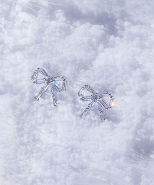 繊細なリボンモチーフが上品なピアス。華奢なビジューをつけたリボンモチーフが華やかなデザインです。キラキラと反射するジルコニアの輝きが、品よく存在感のあるアクセサリーです。ご自身用はもちろんプレゼントにもお勧めです。【cubicシリーズ】cubicジルコニアはダイヤモンドに極めて近い輝きをもつ人工石でダイヤのように多数のカットを施す事でより繊細で強い輝きをはなちます。Cubicシリーズはグレーのボックスが付属しております。※撮影時照明の関係により、色味が違って見える場合がございます。