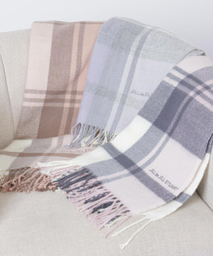 毎年人気!JILL by JILL STUARTのチェックストールから新柄登場。華やかな印象を与える大きめのチェック柄を、今年はニュアンスカラーでまとめた色味と新しいロゴ刺しゅうがポイントです。ショール風に肩掛けしたり、二つ折りにして首元に巻いたりとアレンジ自在!秋冬スタイルに大活躍します。買い足しやカラー違いで揃えたり、プレゼントにもおすすめです。※撮影時照明の関係により、色味が違って見える場合がございます。