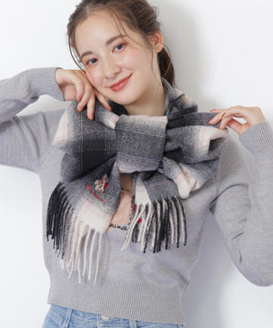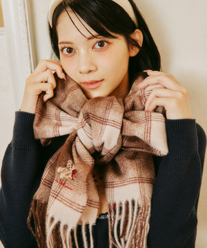 <BEARシリーズ>Holidayベア刺繍チェックストール
