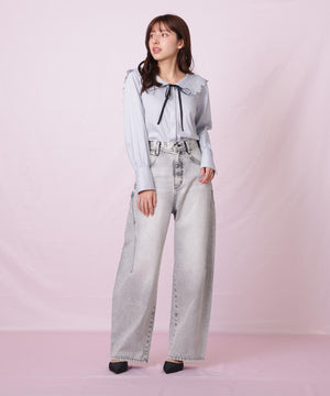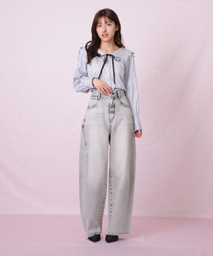 セーラーカラーをレースで仕上げて、可愛いとクラシカルを両立したブラウス。繊細な細リボンは取り外しできます。顔まわりがいっきに華やぐデザインは、スカートを合わせると大人ガーリースタイルが完成。ジャンスカやデニムスタイルとも相性が良く、幅広いコーディネートが楽しめます。※撮影時照明の関係により、色味が違って見える場合がございます。