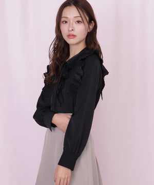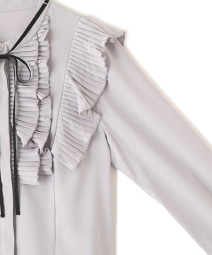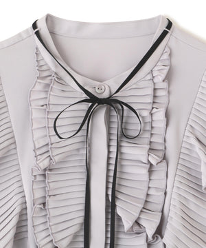 繊細なプリーツとフリルを贅沢にあしらったフェミニンな雰囲気のブラウス。軽やかな揺れ感が女性らしく、ジャンスカやスカートとも相性抜群。ほどよい甘さで大人でも着やすく、オフィスにもデートにも活躍してくれます。コーディネートに取り入れるだけで華やかさをプラスできるアイテムです。※撮影時照明の関係により、色味が違って見える場合がございます。