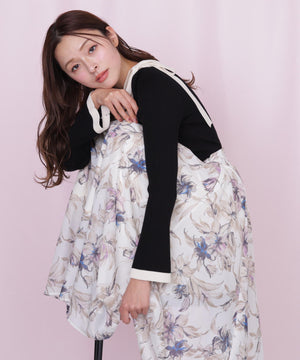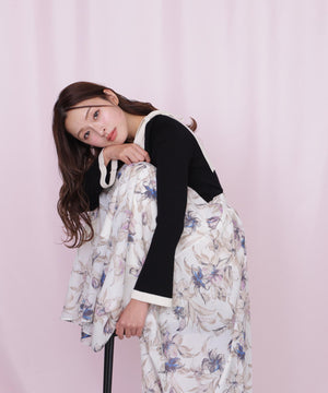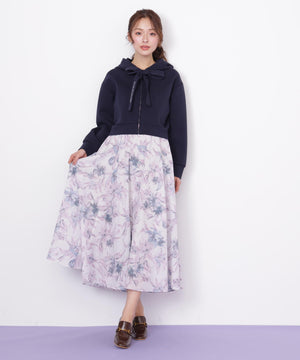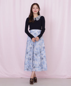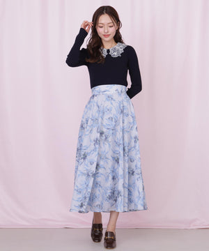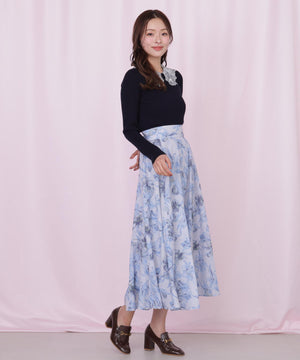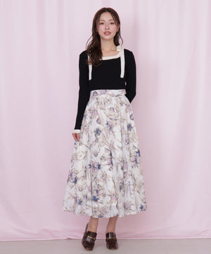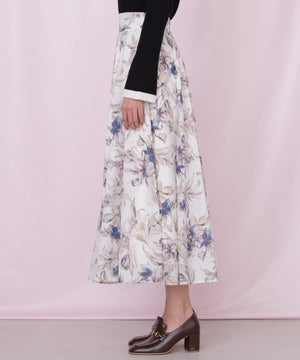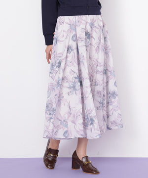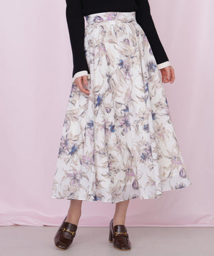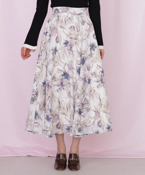 シアーアートフラワープリントスカート