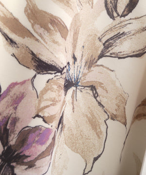 オリジナルの大花柄が華やかなフラワープリントスカート。裾まわりはボリュームがあり、歩くたびに揺れるキレイなシルエットです。後ろウエストはゴム仕様でフィット。チョーカー付きニット(店舗商品番号125-6170026)にジャケットやコート合わせがおすすめです。※撮影時照明の関係により、色味が違って見える場合がございます。