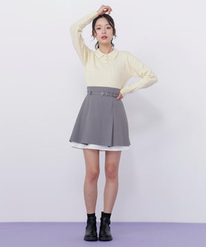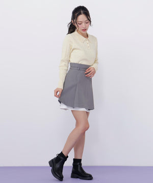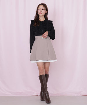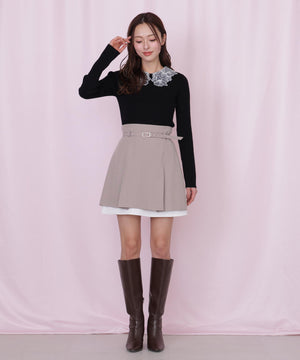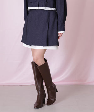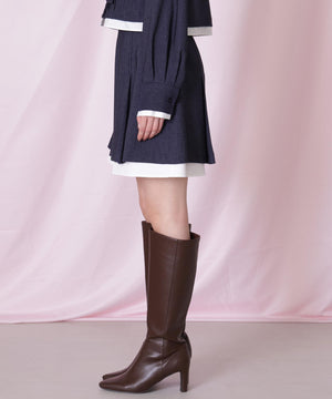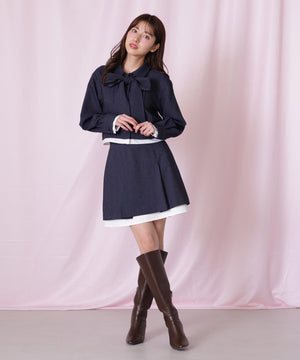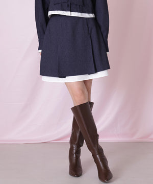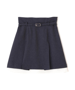 裾から別生地がのぞくトレンド感のあるデザインのミニスカート。ハイウエストのシンプルなシルエットにひとくせ加えた新鮮なデザインです。細ベルトマークすると、くびれを強調しながらスタイルアップが叶います。同素材のジャケット(店舗商品番号125-6150004)とバランスが良い丈感になっています。セットアップで着こなすのもおすすめです。インディゴカラーはデニム見えする素材です。※撮影時照明の関係により、色味が違って見える場合がございます。