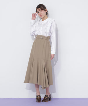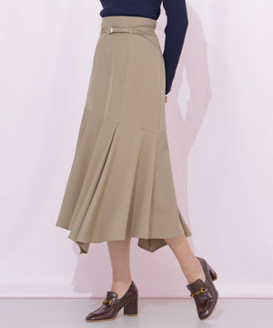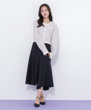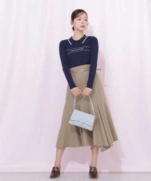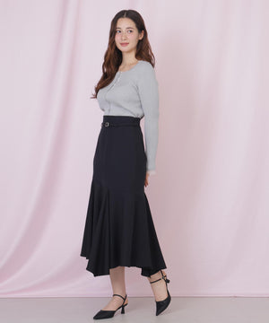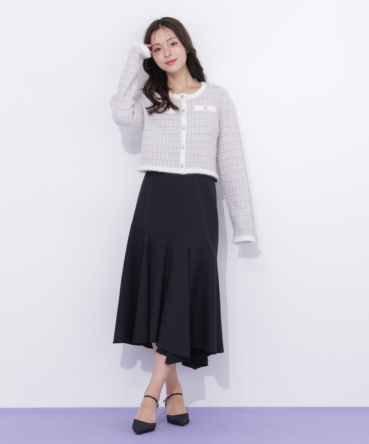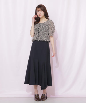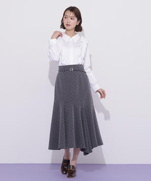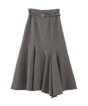 ハイウエストで腰回りすっきりシルエットのマーメイドスカート。歩くと裾のフレアがキレイに揺れるように、切り替えしはたっぷりフレアを入れました。細ベルトでウエストマークして細見えが叶います。2026 SSトレンドのドットの色展開が新鮮です。
