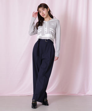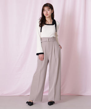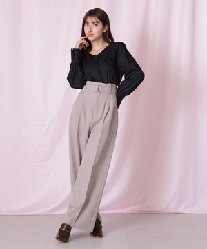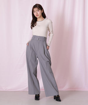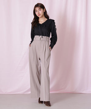 <セットアップ対応>太ベルト付きスラックスパンツ