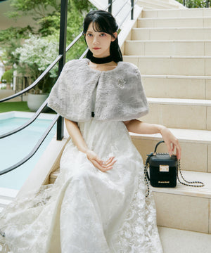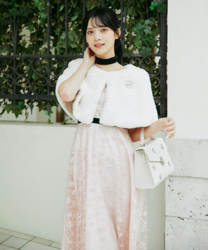 セットのベロアのチョーカーが首元を上品に引き締め洗練されたスタイリングが叶います。たっぷりと揺れるボリュームのあるシルエットが特別なシーンをより印象的に演出します。