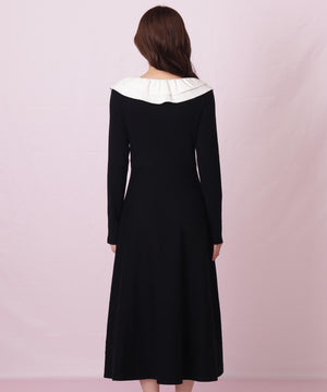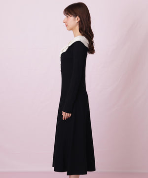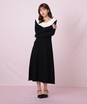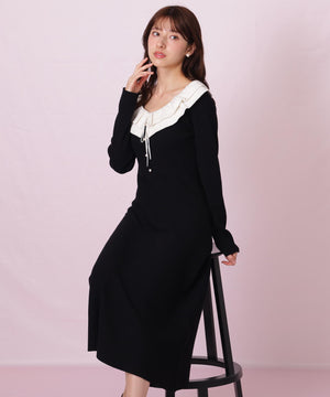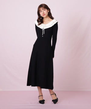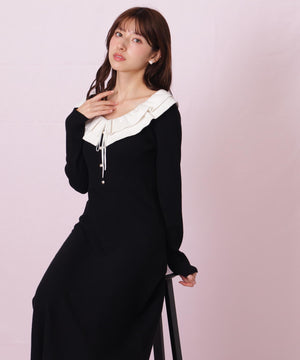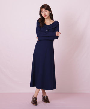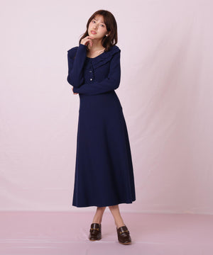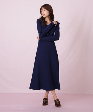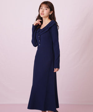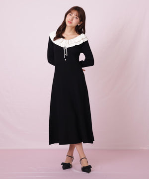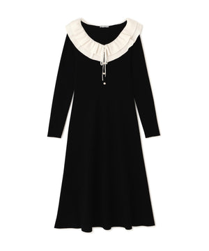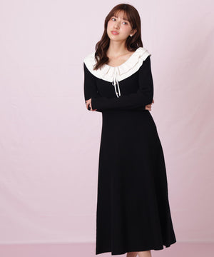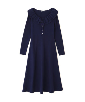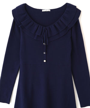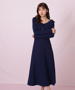 フリル襟デザインが目を引く、上品なニットワンピース。柔らかい素材が体に優しくフィットし、一枚でスタイルが決まる主役級アイテム。フィット&フレアシルエットがスタイルアップを叶えてくれます。程よい甘さと落ち着いた印象を兼ね備え、デイリーにもお出かけにも活躍してくれます。※撮影時照明の関係により、色味が違って見える場合がございます。