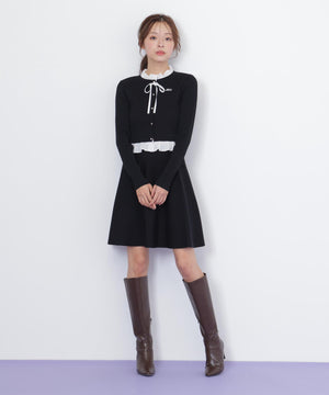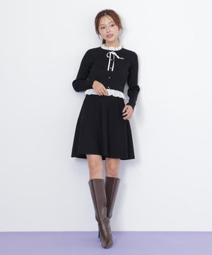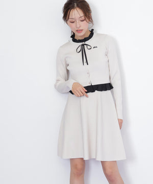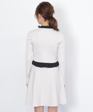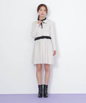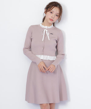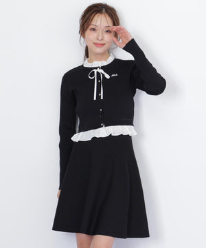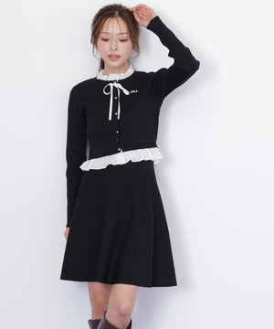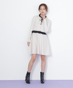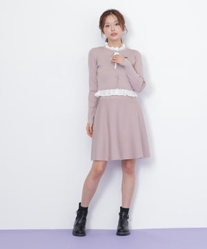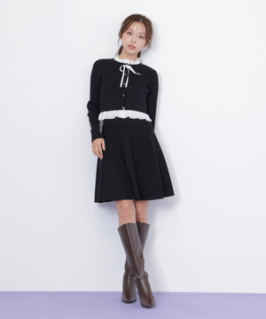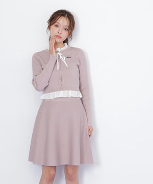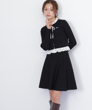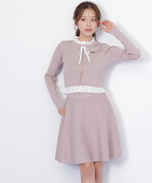 布帛フリルを重ねたカーディガンとミニスカートのセットアップ。カーディガンは取り外し出来るリボンが揺れて可愛いデザイン。シンプルながらも計算されたシルエットがフェミニンな印象です。スカートは、立体的なフレアが動くたびにふわっと揺れて華やかさを引き立てます。セットで着ると統一感のある大人ガーリースタイルが完成。単品でも着回せます。特別な日にもデイリーにも活躍してくれる万能SETアイテムです。※撮影時照明の関係により、色味が違って見える場合がございます。