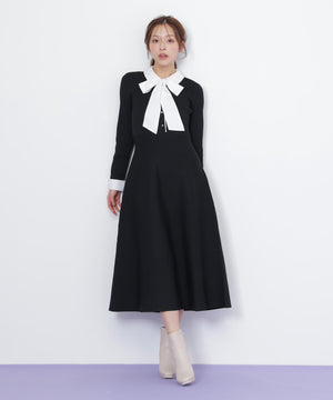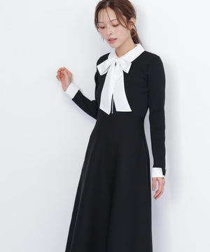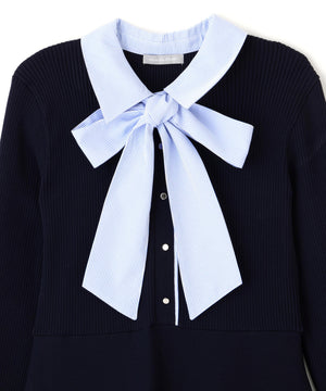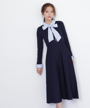 シャツ襟ドッキングニットワンピース