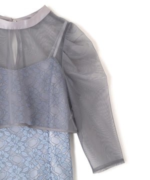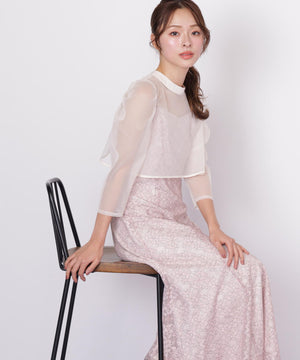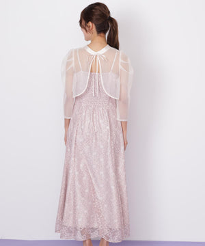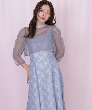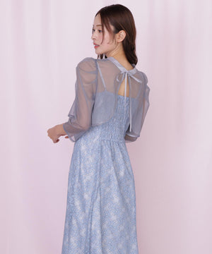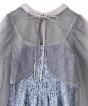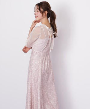 目が細かくて密度のある柔らかいチュールブラウスと、華やかな柄のレースキャミワンピースのセット。ブラウスは前後2way仕様のため、シチュエーションに合わせてリボンを前にしても着用いただけます。ワンピースの肩紐は長さ調整可能。背中が見えすぎず、上品な肌見せになるよう計算されたデザインです。様々な体型の方に合うよう、背中はシャーリング仕様でフィットします。※撮影時照明の関係により、色味が違って見える場合がございます。