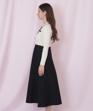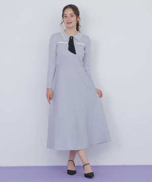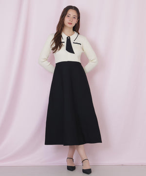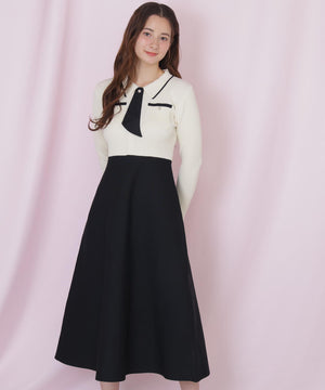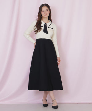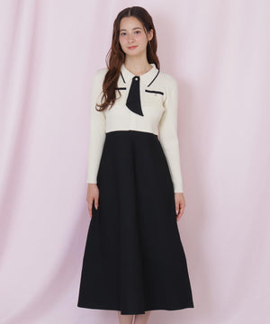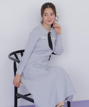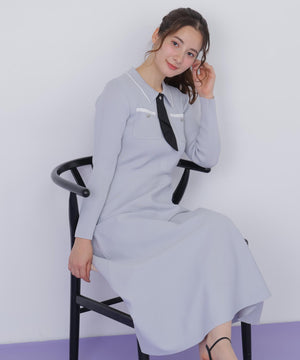 タイ付きニットワンピース