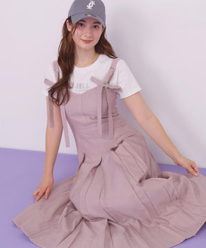 デニムライク配色ステッチビスチェジャンスカ