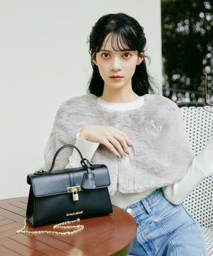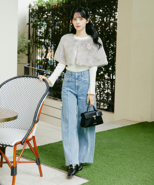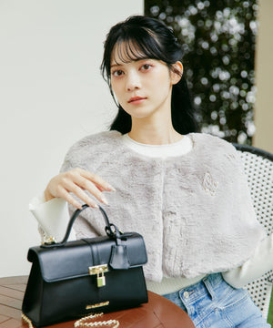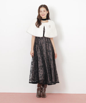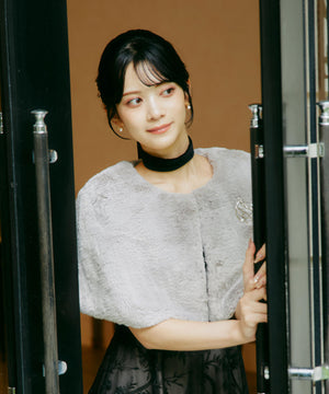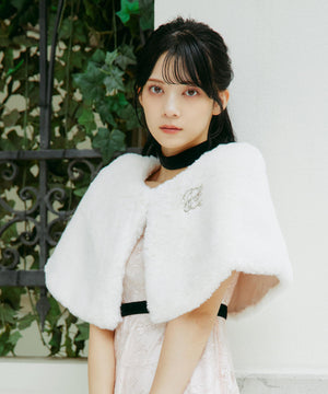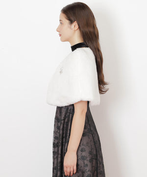 ふわりと羽織るだけで上品な印象を添えるフェイクファーのショートケープ。