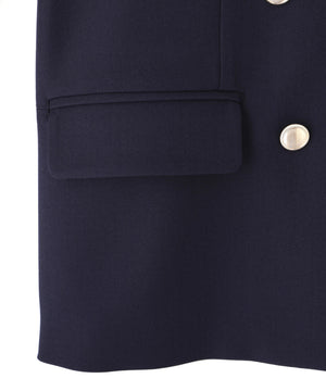 春から秋まで長く使えるさらっとしたタッチの生地を使用したジャケット。コーデの邪魔をしないように、シンプルで上品な金色ボタンを使用しています。同素材のスカート(店舗商品番号125-6120024)・パンツ(125-6130004)とのセットアップもおすすめです。※撮影時照明の関係により、色味が違って見える場合がございます。