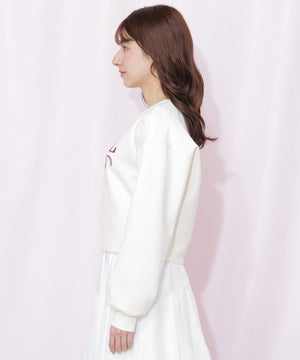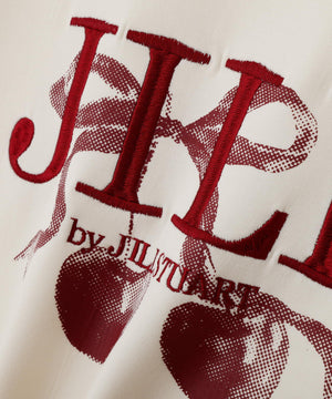 オリジナルの点描タッチのチェリーとリボンを組み合わせたモチーフのプリントの上から、大き目のロゴ刺繍を入れたキャッチーなスウェットが登場。表面感がきれいなダイバー素材にプリントすることで、カジュアル過ぎない仕上がりになっております。赤系のモチーフカラーが新鮮です。