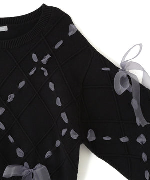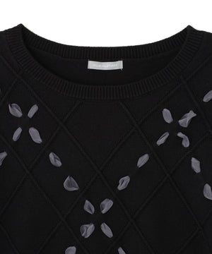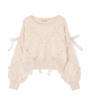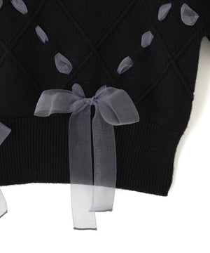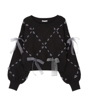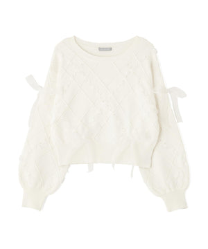 ダイヤ柄リボンニット