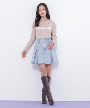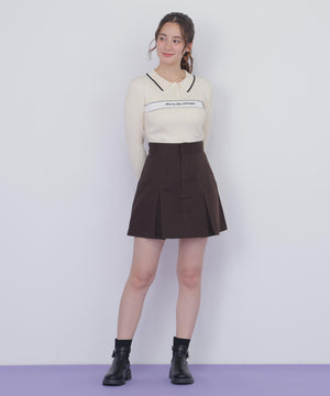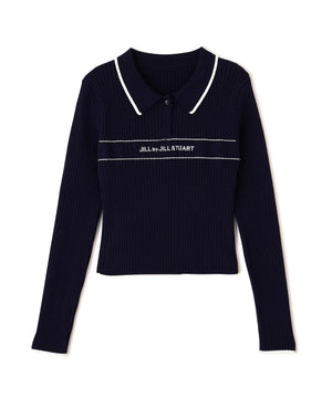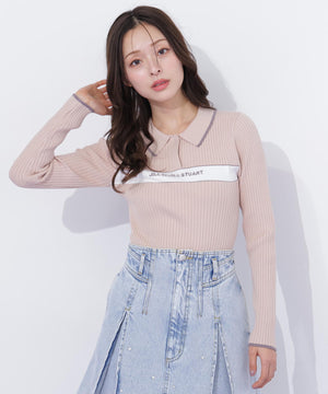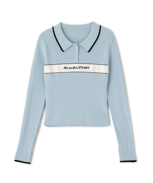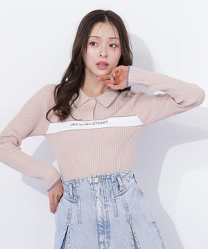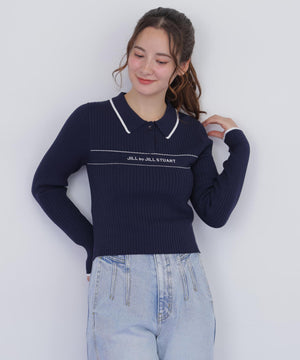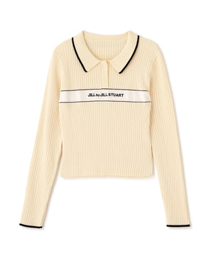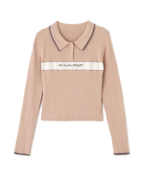 ポロ襟配色ラインリブニット