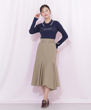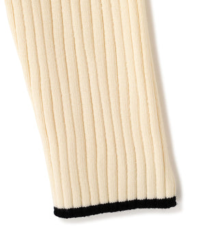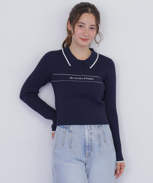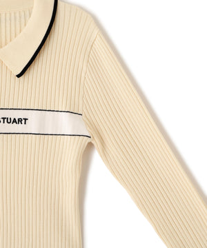 ポロ襟デザインに配色ラインを効かせた、キャッチでクラシカルムード漂うリブニット。程よくフィットするシルエットで、身体のラインをきれいに見せてくれます。リブ編みの縦ラインがスタイルアップ効果をプラス。一枚で着映えし、スカートにもパンツにも合わせやすい万能トップス。きれいめからカジュアルまで幅広く活躍します。