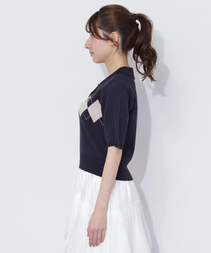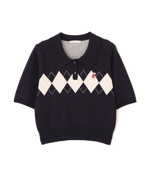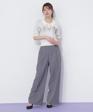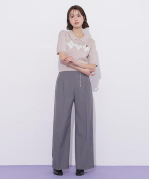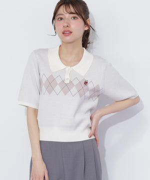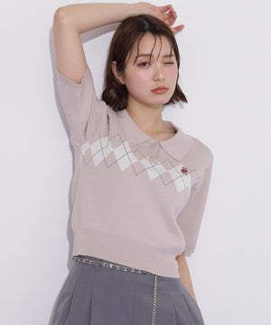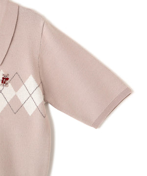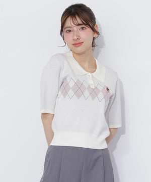 春カラーのアーガイル柄のオリジナルニット編地に、左胸にJILLBEARの可愛らしいワンポイント刺繍が入っています。軽くてサラッとした生地で、プリーツボトムとの相性が抜群です。
