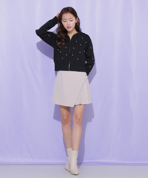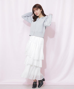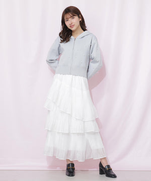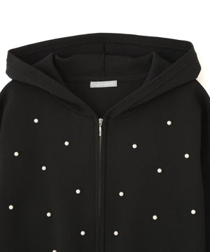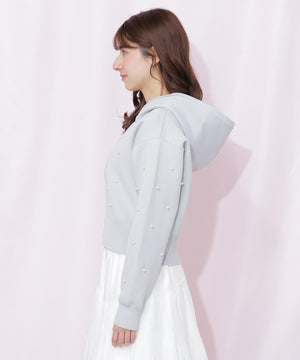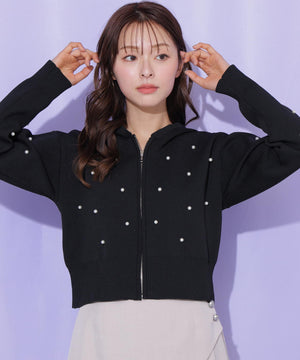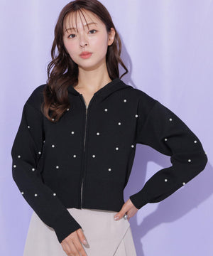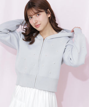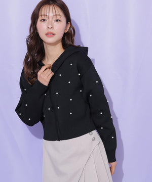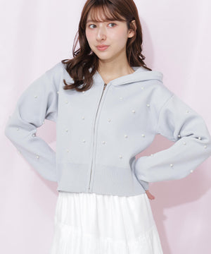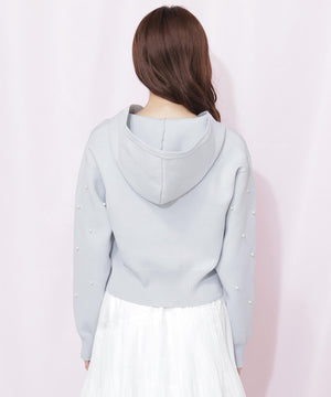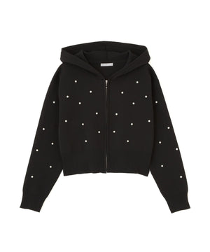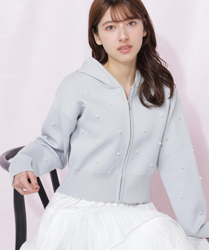 軽くてドライタッチでふくらみのある糸を使用したニットパーカーが登場。無地ジャガードの編地にパールのカシメをランダムに飛ばしたキレイ目パーカーです。ワンピースやデニムパンツ等に合わせやすいデザインで、軽量でしわになりにくく、旅行などの持ち運びにもおすすめです。