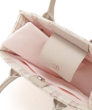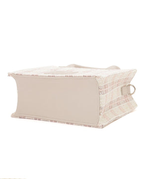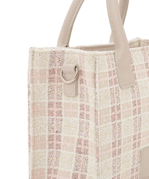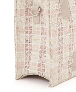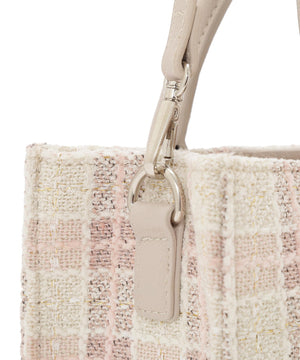 春らしいカラーチェックが目を引くツイード素材のトートバッグ。ラメ入りで上品さもあり大人可愛い印象に見せてくれます。ロゴ入りの合皮パッチがアクセント。コンパクトな印象ながらしっかり収納できるのも魅力。内ポケット付き。ショルダーは取り外し可能です。※撮影時照明の関係により、色味が違って見える場合がございます。