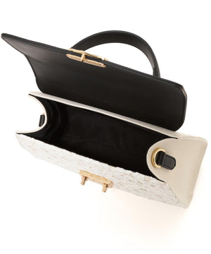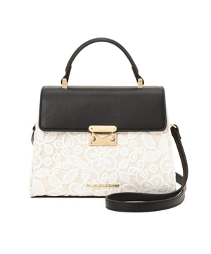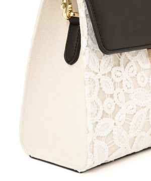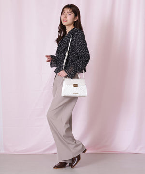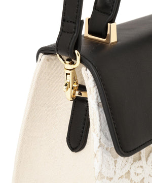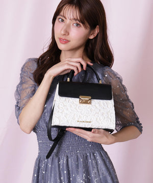 レース素材に合皮フラップを合わせたエレガントなバッグ。ワンハンドル持ちとショルダー持ちの2wayデザインです。ショルダーストラップは取り外し可能。小ぶりながらも必要なモノが収まるサイズ感で、普段使いからオケージョンシーンまで幅広く活躍してくれます。※撮影時照明の関係により、色味が違って見える場合がございます。