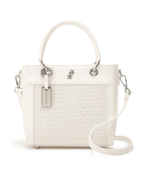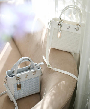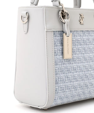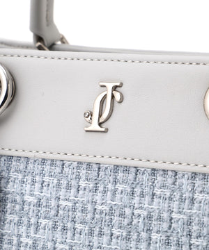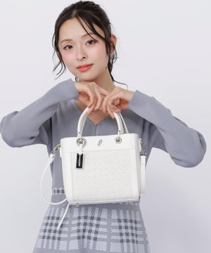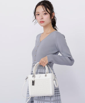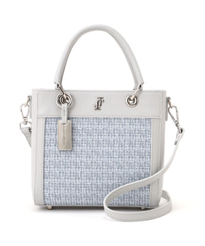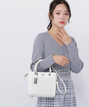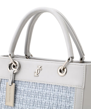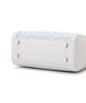 ツイード素材とスムース素材を組み合わせた軽やかなトートバッグ。異素材のコントラストに、丸ハンドルやメタルパーツがエレガントアクセントになっています。ショルダーストラップは取り外しできる2WAY仕様。春のコーディネートに映えるホワイトとブルーの2色展開です。※撮影時照明の関係により、色味が違って見える場合がございます。