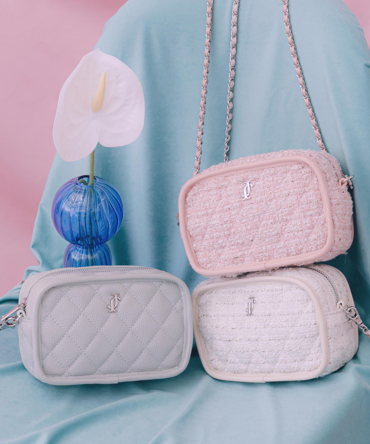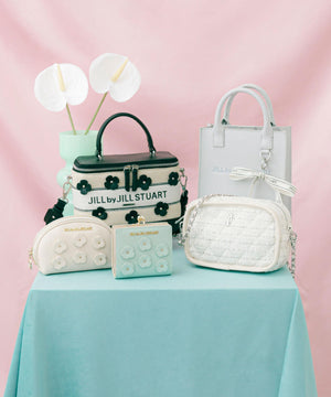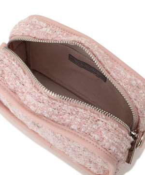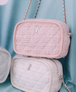キルティングが上品なコンパクトショルダーバッグ。パイピングがアクセントになるキャッチーなデザインです。小さめサイズでコーディネートしやすく、かしこまりすぎないのも魅力。チェーンショルダーが高みえし、デイリーにもお出かけにも活躍します。春ツイード(ピンク・ホワイト)とシボ感のある合皮素材(ブルー)を揃えています。※撮影時照明の関係により、色味が違って見える場合がございます。