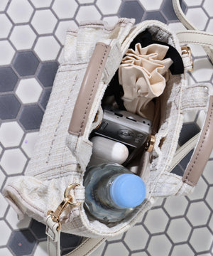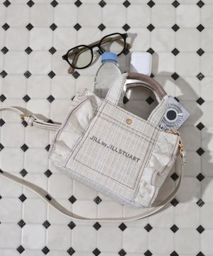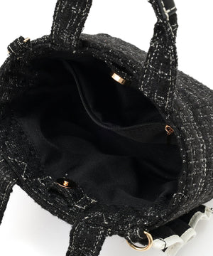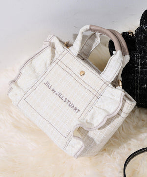 「ブランドのアイコンであるフリルトートからミニサイズが新登場」フリルの可愛らしいディテールはそのまま、日常に寄り添う小ぶりなサイズが、お出かけにぴったりなアイテムです。こちらは品の良いラメツイードを使用しているのでコーディネートに取り入れるだけで、華やかさをプラス。口元は中身を隠せるマグネット仕様、内側はファスナーポケット付き。実用性もありながら開口部が広く、見た目以上の収納力も魅力です。ショルダーは取り外し可能。※撮影時照明の関係により、色味が違って見える場合がございます。