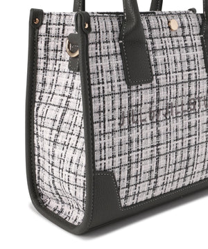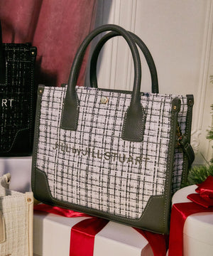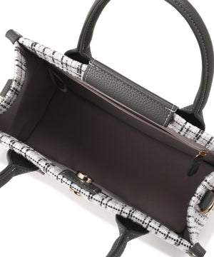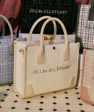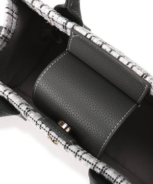 「人気のトートバッグにツイード素材が登場」ちらちらと光るフィルム入りのツイード素材を使用した華やかなバッグは、デイリー使いやすい上品さが魅力。形、サイズは定番人気のスカーフトートと同様、サイドのパイピングと底に合皮を合わせ、型崩れしにくいしっかりとしたフォルムです。ショルダーは取り外し可能。※撮影時照明の関係により、色味が違って見える場合がございます。