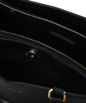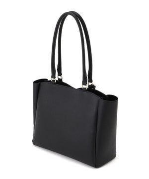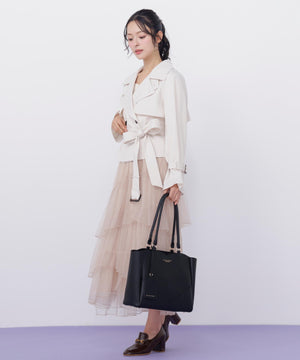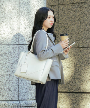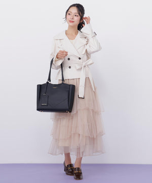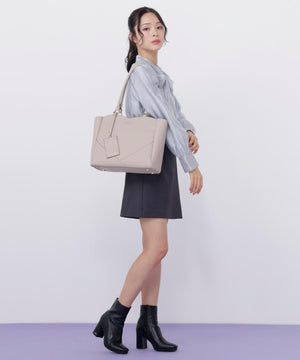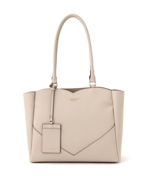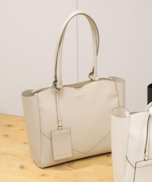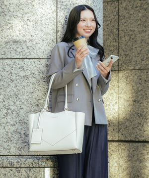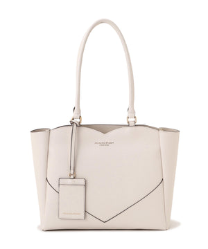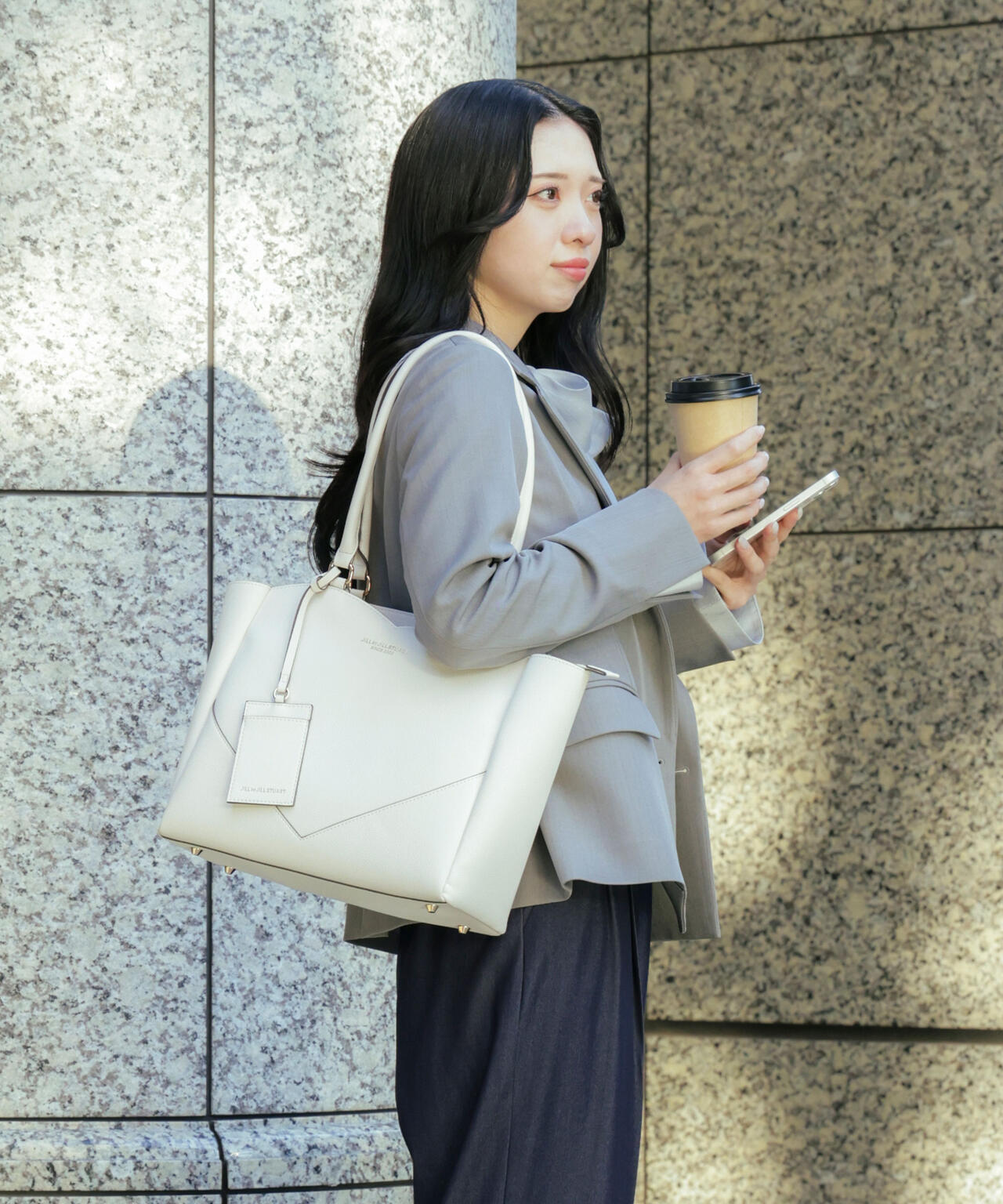 さりげないハートモチーフのカッティングが大人の可愛さを引き立てるA4サイズ対応のトートバッグ。縁取りしたコバ配色が全体を引き締める品の良いアクセントに。外側には大きなポケット、内側にはファスナーポケット、パッチポケット付き。A4ファイルや書類、PCが収納できるサイズで実用性があります。可愛さときちんと感を両立したデザインは、オフィスへの通勤シーンにおすすめです。※撮影時照明の関係により、色味が違って見える場合がございます。