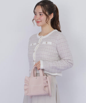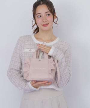 「ブランドのアイコンであるフリルトートミニサイズから新色登場!」フリルの可愛らしいディテールはそのまま、日常に寄り添う小ぶりなサイズが、お出かけにぴったりなアイテムです。口元は中身を隠せるマグネット仕様、内側はファスナーポケット付き。実用性もありながら開口部が広く、見た目以上の収納力も魅力です。ショルダーは取り外し可能。こちらはフェイクレザーを使用、ホワイトとピンクカラーが新色です。※撮影時照明の関係により、色味が違って見える場合がございます。