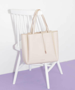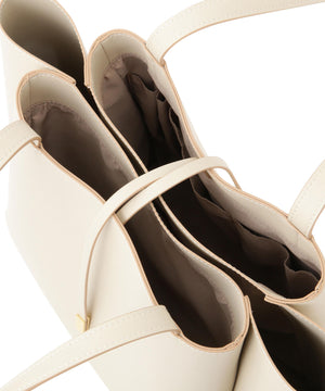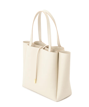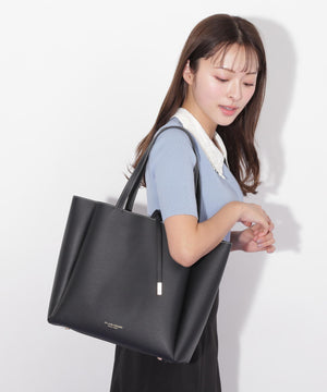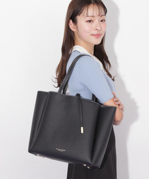 デイリーに万能なトートバッグ。大きめのサイズで容量があり、3つに仕切られた収納スペースで整理整頓しやすい仕様。A4ファイルの書類なども収納できるので、オンオフで大活躍します。ブランドロゴが入った、ボディと口元の紐がポイントになります。コーディネートに馴染むシンプルなデザインは季節を問わずお使い頂けます。※撮影時照明の関係により、色味が違って見える場合がございます。