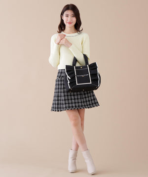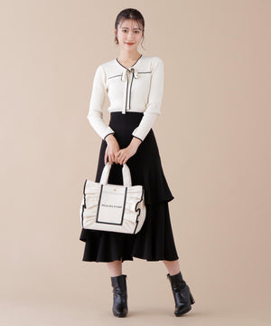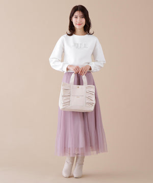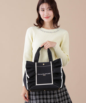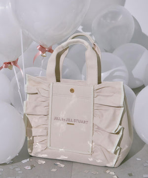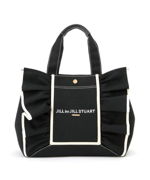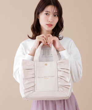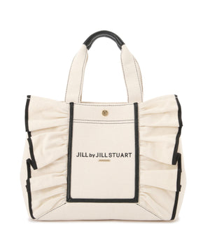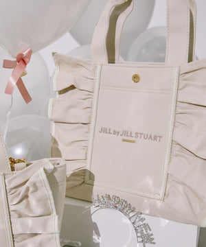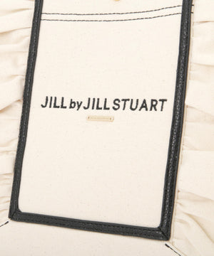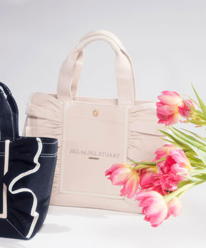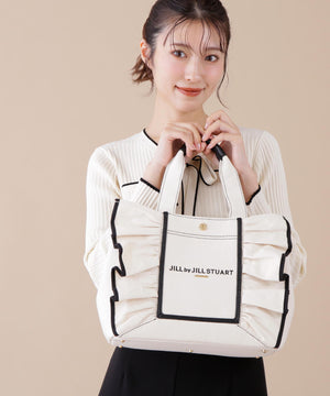 JILL by JILL STUARTのアイコンバッグ「フリルトート」5周年を記念して登場!ボリュームあるワイドフリルと額縁のような配色テープディテールがポイント。従来のフリルバッグとは異なるロゴの書体とサイズ、フリルも大人っぽく仕上げています。ハンドル部分には合皮素材を合わせて、品の良さと実用性も兼ね備えました。両脇にはスナップボタンが付いているので、荷物の収納量に合わせてフォルム調節ができます。中は便利なポケット付き。※撮影時照明の関係により、色味が違って見える場合がございます。